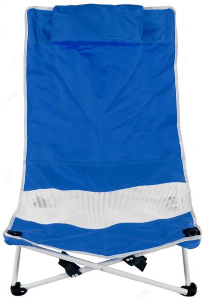Krzesło plażowe z podgłówkiem. Materiał: stalowa rama i poliester 600D. Max. obciążenie 100 kg.
