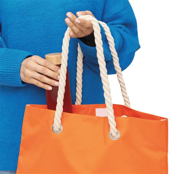 Torba plażowa CAPRI zamykana na rzep, miłe w dotyku bawełniane uchwyty, z metalowymi oczkami. Materiał: 300D Poliester/Bawełna Kolor: pomarańczowy Tagi: Torby,artykuły plażowe,bagaż