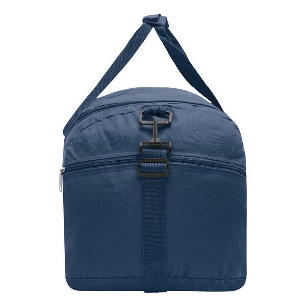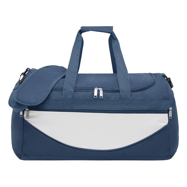 Torba na ramię CHAMP zamykana na zamek błyskawiczny z dużą kieszenią, kieszeniami bocznymi, mocnym uchwytem do noszenia odpinanym paskiem na ramię z miękką podkładką, którego długość można regulować. Materiał: 600D Poliester Kolor: biały, ciemnoniebieski Tagi: Torby sportowe,torby,bagaż,artykuły sportowe,fitness