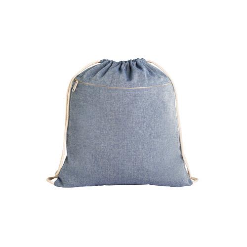Torba z recyklingowanej bawełny (70%), poliestru (30% rPET) (140 g/m2) ze ściągaczem, przednia kieszeń z dyskretnym zamkiem błyskawicznym, posiada bawełniane paski do zamykania. Bawełna z recyklingu jest niebarwiona. Surowiec jest używany w swojej oryginalnej formie i kolorze, bez użycia barwiących lub wybielających chemikaliów, co przyczynia się do zmniejszania negatywnego wpływu na środowisko. 370 x 410 mm