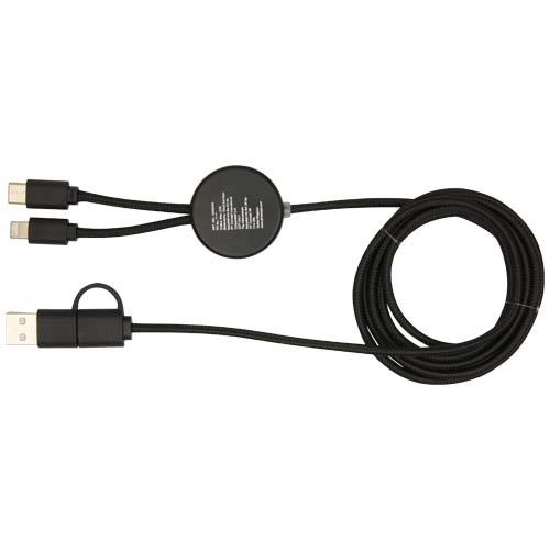 Kabel Chechia 5 w 1 do synchronizacji danych i szybkiego ładowania 27 W jest wykonany z przetworzonego plastiku z dodatkiem bambusa pochodzącego ze zrównoważonych źródeł. Kabel jest wyposażony w złącze wejściowe USB-A i Type-C w połączeniu ze złączem wyjściowym Type-C oraz Lightning/Micro USB. Połączenie USB-A do USB-C zapewnia moc wyjściową maks. 27 W, a wszystkie inne opcje połączenia maks. 15 W. Akcesorium jest kompatybilne z CarPlay i Android Auto. Niezależnie od tego, czy jesteś w domu, w biurze czy w podróży, kabel Chechia zapewnia połączenie wydajności i stylu. Długość kabla: 150 cm.
