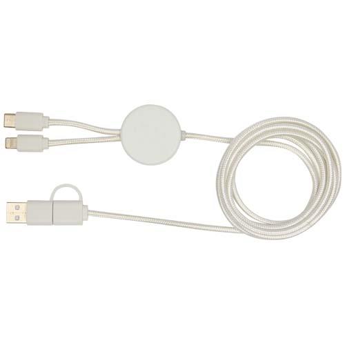 Kabel Chechia 5 w 1 do synchronizacji danych i szybkiego ładowania 27 W jest wykonany z przetworzonego plastiku z dodatkiem bambusa pochodzącego ze zrównoważonych źródeł. Kabel jest wyposażony w złącze wejściowe USB-A i Type-C w połączeniu ze złączem wyjściowym Type-C oraz Lightning/Micro USB. Połączenie USB-A do USB-C zapewnia moc wyjściową maks. 27 W, a wszystkie inne opcje połączenia maks. 15 W. Akcesorium jest kompatybilne z CarPlay i Android Auto. Niezależnie od tego, czy jesteś w domu, w biurze czy w podróży, kabel Chechia zapewnia połączenie wydajności i stylu. Długość kabla: 150 cm.