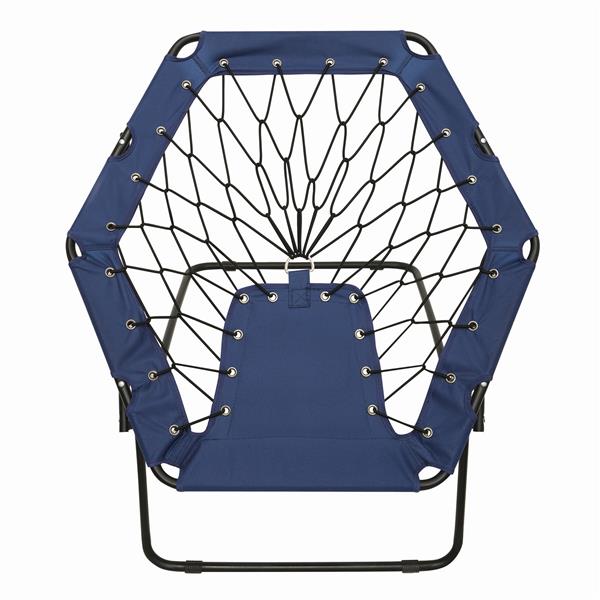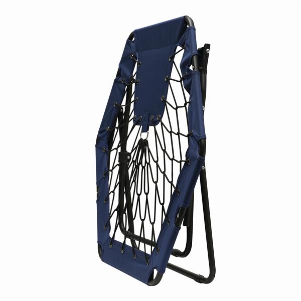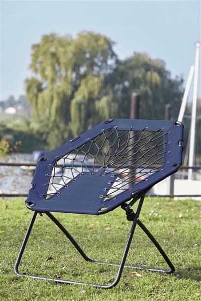 Krzesło bungee CHILL OUT. Wygodne krzesło wykonane z elastycznych lin, solidna stalowa rama, z rozkładanymi nóżkami. Materiał: Stal/600D Poliester Kolor: czarny, niebieski Tagi: Akcesoria kempingowe,artykuły rekreacyjne,akcesoria ogrodowe,artykuły gospodarstwa domowego,akcesoria podróżne,elementy do siedzenia