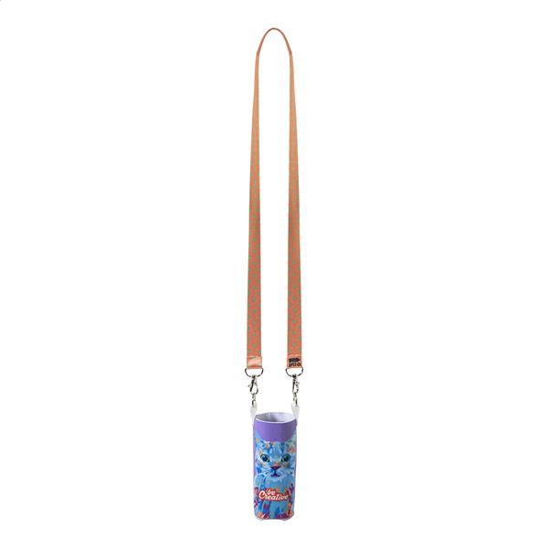 Wykonana na zamówienie, neoprenowa osłona termiczna RPET na puszki aluminiowe 0,33 l, z full kolorową smyczą RPET z metalowymi karabińczykami. Z grafiką nadrukowaną metodą sublimacji na całej powierzchni. Min. ilość: 100 szt.