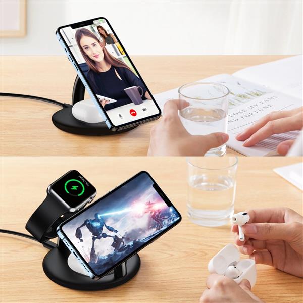 Choetech indukcyjna stacja ładująca 3w1 iPhone 12/13/14, AirPods Pro, Apple Watch czarny (T587-F)
