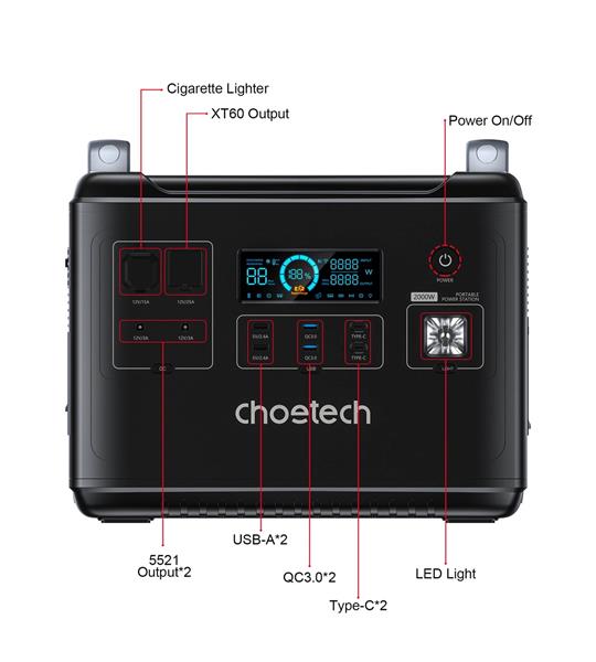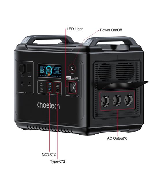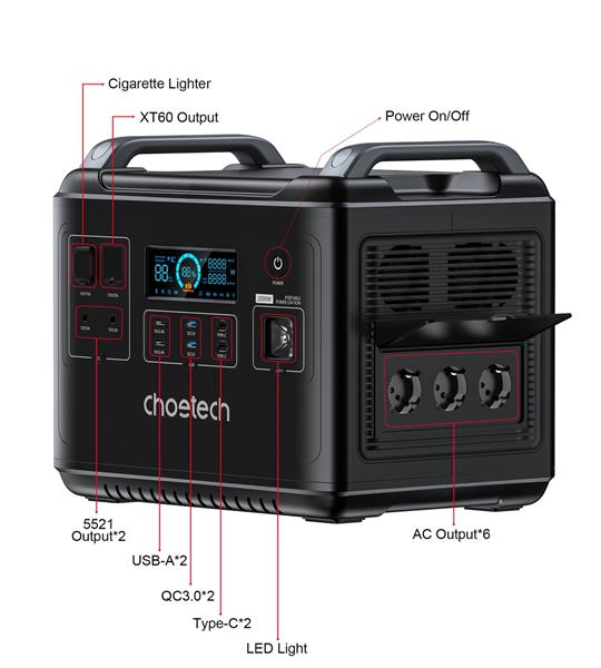Swobodny dostęp do zasilania poza domem? Przenośna stacja zasilania od Choetech umożliwia dostęp prądu przemiennego o mocy aż 2000W. To wszechstronne urządzenie gwarantuje nieprzerwaną pracę również większych sprzętów, jak laptop, telewizor, dron, a także lodówka, co czyni je idealnym rozwiązaniem w dłuższej podróży. Dla wszystkich miłośników „zielonej energii”, stacja może być zasilania również za pośrednictwem paneli słonecznych. Możesz funkcjonować z dala od sieci energetycznej, bez rezygnowania ze sprzętów elektrycznych. Stacja posiada wyświetlacz LCD, na którym przedstawiony jest aktualny stan naładowania baterii, raport parametrów, temperatura oraz moc ładowania.