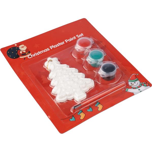 Zestaw do malowania, gipsowa figurka drzewka świątecznego, trzy farby i pędzel, sznurek do przymocowania, produkt wykonany z PS