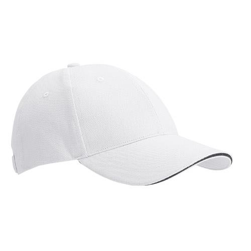 Czapka z daszkiem typu „sandwich”, 100% bawełna szczotkowana, z 6 panelami i wyszywanymi otworami wentylacyjnymi (260 g/m2). Regulacja za pomocą metalowej klamry. Rozmiar: 580 mm