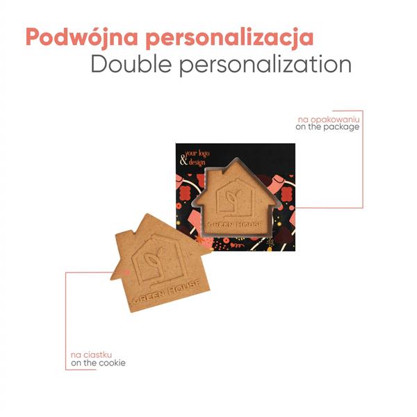 Ciastko o aromacie korzennego piernika, tym razem w kształcie uroczego domku, z wyeksponowanym Twoim logo! Wykorzystaj ten wyjątkowy gadżet reklamowy, aby skierować przekaz prosto do serc Twoich klientów. To chrupiące ciastko przyciąga uwagę swoim niepowtarzalnym kształtem.