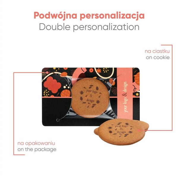 Połączenie smaku, stylu i personalizacji – tak w skrócie można opisać Ciastko Reklamowe Logo Cookie Karnet. To aromatyczne, korzenne ciasteczko z możliwością nadruku logo lub dowolnej grafiki bezpośrednio na jego powierzchni, zapakowane w elegancki karnet reklamowy.