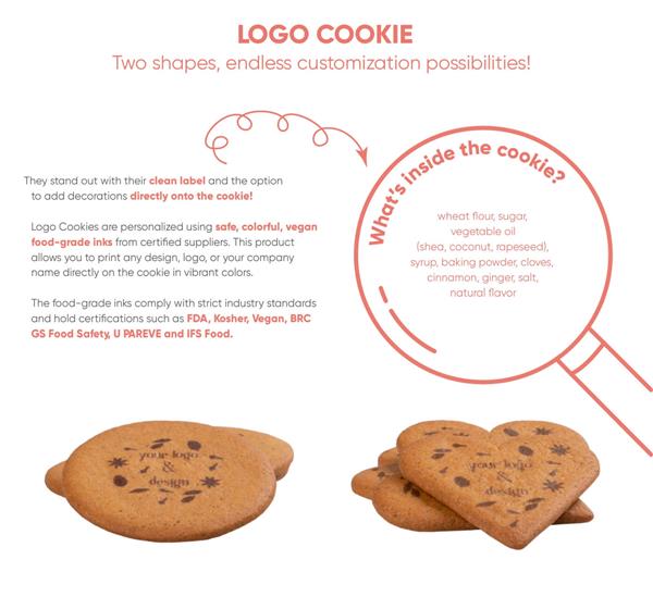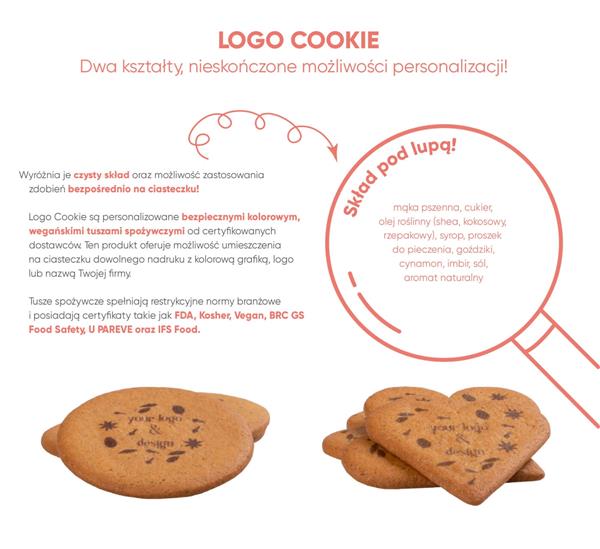 Logo Cookie to więcej niż tylko pyszne ciasteczko. W tym wariancie do ciastka dołączony jest karnet, który pozwala w pełni wykorzystać potencjał personalizacji. To doskonała przestrzeń na przekaz reklamowy, życzenia lub podziękowania dla klientów, kontrahentów i pracowników.