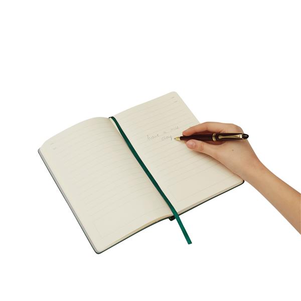 Długopis CLASSIC z akcentami w złotym kolorze, z dużym wkładem z niebieskim tuszem.