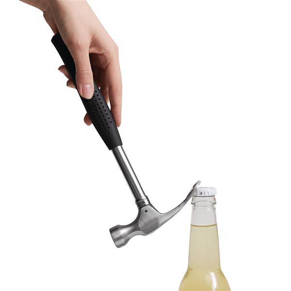 Młotek CLOCK OFF z młotkiem po jednej i otwieraczem do butelek po drugiej stronie. Z plastikową rączką.