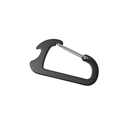 Aluminiowy karabińczyk z otwieraczem do butelek. Produkt nie nadaje się do wspinaczki. 44 x 79 x 3 mm