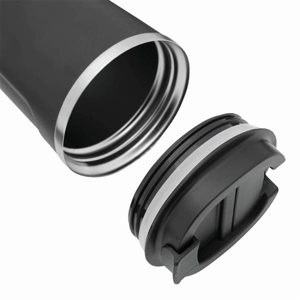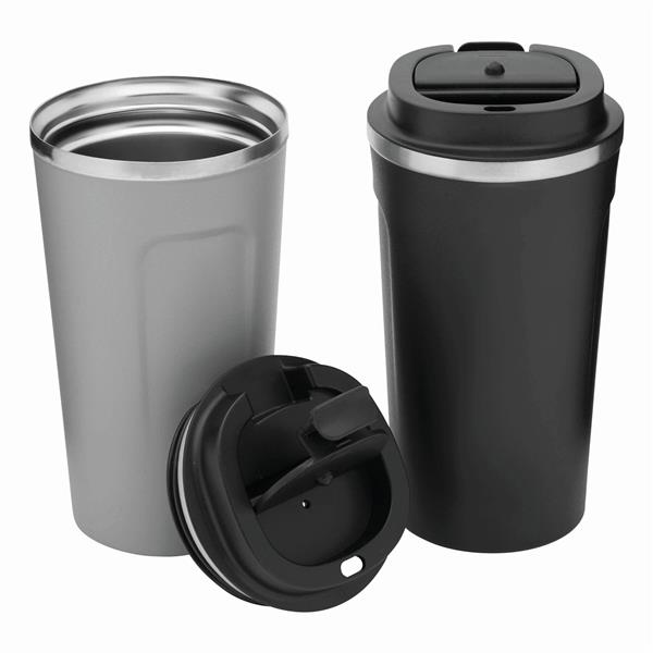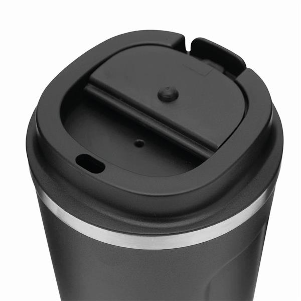 Podróżny kubek termiczny COFFEE TIME, podwójne ścianki: wewnątrz i na zewnątrz wykonane ze stali nierdzewnej, bezpieczna zakręcana pokrywka z silikonowym O-ringiem i zintegrowanym otworem do picia, pojemność ok. 500 ml