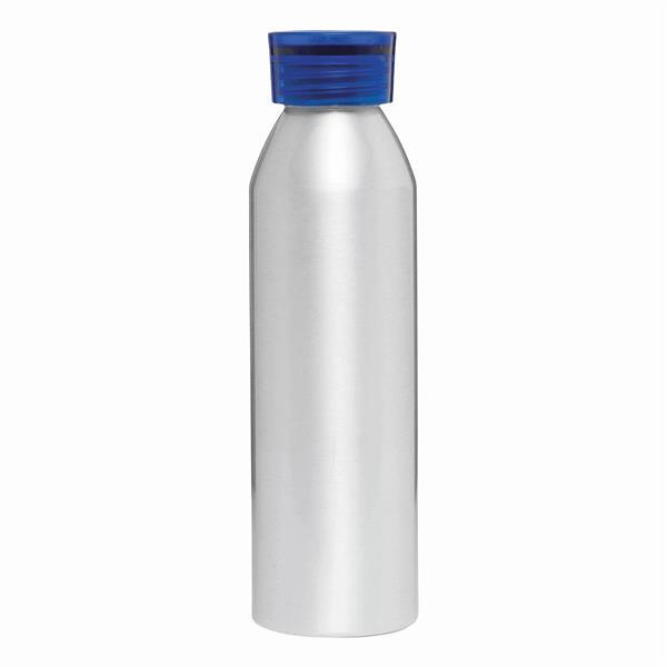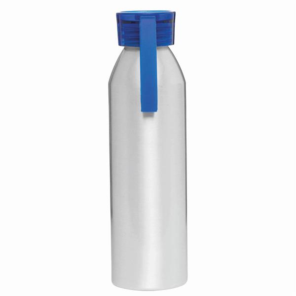 Aluminiowa butelka COLOURED z kolorową plastikową zakrętką i silikonowym paskiem do przenoszenia, pojemność ok. 650 ml. Materiał: Aluminium/Plastik/Silikon Kolor: niebieski Tagi: Butelki do napojów,artykuły sportowe,fitness,artykuły rekreacyjne,akcesoria podróżne