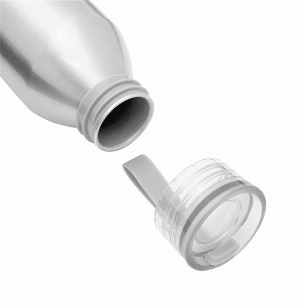 Aluminiowa butelka COLOURED z kolorową plastikową zakrętką i silikonowym paskiem do przenoszenia, pojemność ok. 650 ml. Materiał: Aluminium/Plastik/Silikon Kolor: szary Tagi: Butelki do napojów,artykuły sportowe,fitness,artykuły rekreacyjne,akcesoria podróżne