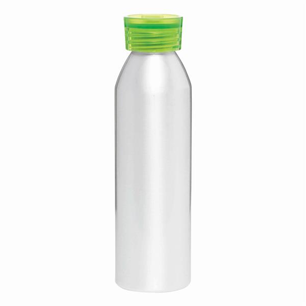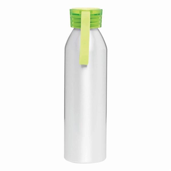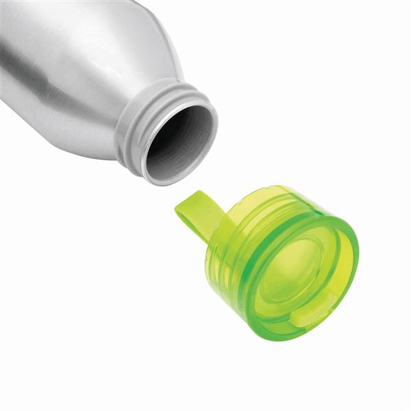 Aluminiowa butelka COLOURED z kolorową plastikową zakrętką i silikonowym paskiem do przenoszenia, pojemność ok. 650 ml. Materiał: Aluminium/Plastik/Silikon Kolor: zielone jabłko Tagi: Butelki do napojów,artykuły sportowe,fitness,artykuły rekreacyjne,akcesoria podróżne