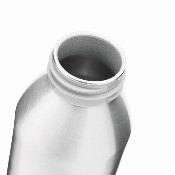 Aluminiowa butelka COLOURED z kolorową plastikową zakrętką i silikonowym paskiem do przenoszenia, pojemność ok. 650 ml.