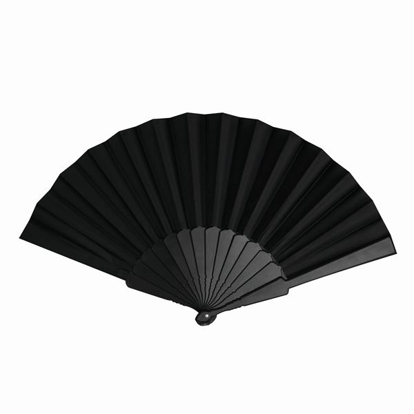 Składany wachlarz COOL RPET: wykonany z poliestru pochodzącego z recyklingu, zamontowany na wytrzymałych plastikowych listwach. Materiał: Plastik/Poliester Kolor: czarny Tagi: Wentylatory,lato,plaża,liście