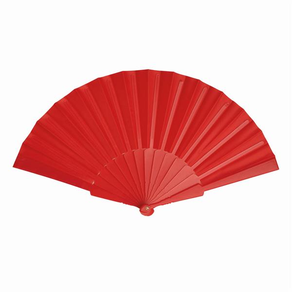 Składany wachlarz COOL RPET: wykonany z poliestru pochodzącego z recyklingu, zamontowany na wytrzymałych plastikowych listwach. Materiał: Plastik/Poliester Kolor: czerwony Tagi: Wentylatory,lato,plaża,liście