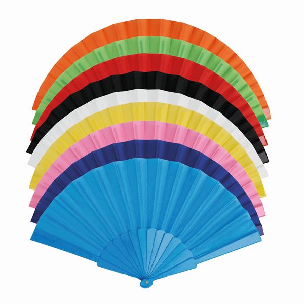 Składany wachlarz COOL RPET: wykonany z poliestru pochodzącego z recyklingu, zamontowany na wytrzymałych plastikowych listwach.