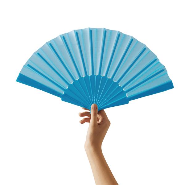 Składany wachlarz COOL RPET: wykonany z poliestru pochodzącego z recyklingu, zamontowany na wytrzymałych plastikowych listwach. Materiał: Plastik/Poliester Kolor: jasnoniebieski Tagi: Wentylatory,lato,plaża,liście