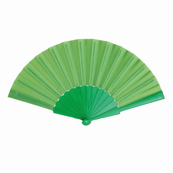 Składany wachlarz COOL RPET: wykonany z poliestru pochodzącego z recyklingu, zamontowany na wytrzymałych plastikowych listwach.