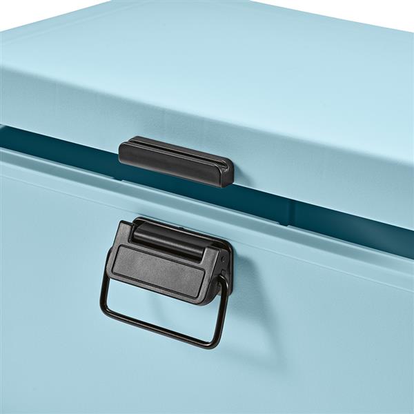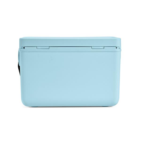 Plastikowa lodówka 12L z recyklingu: Trwała, przyjazna dla środowiska, z poręcznym paskiem transportowym. Dostarczana z tabliczką (14 x 7 cm), na której można umieścić logo. Idealny do chłodzenia napojów w podróży, podczas biwakowania lub na plaży.