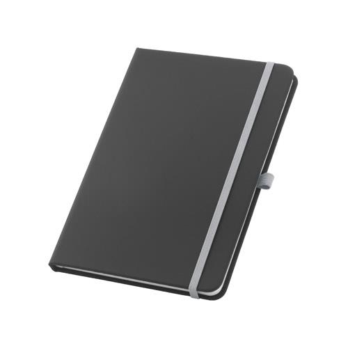 Notatnik A5 w PU z twardą okładką. Zawiera 160 stron w linie (70 g/m2), zakładkę separacyjną dostępną w różnych kolorach, elastyczną opaskę i uchwyt na długopis (nie jest dołączony). 140 x 210 mm