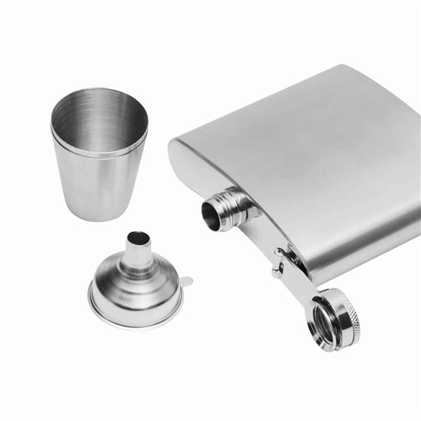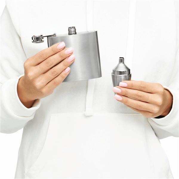 Zestaw z piersiówką COWBOY składa się z piersiówki (ok. 150 ml pojemności), lejka i 2 kieliszków, zapakowane w pudełko.