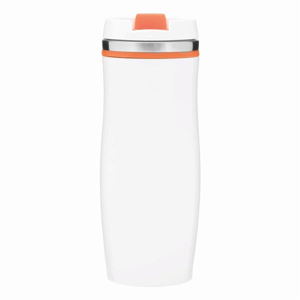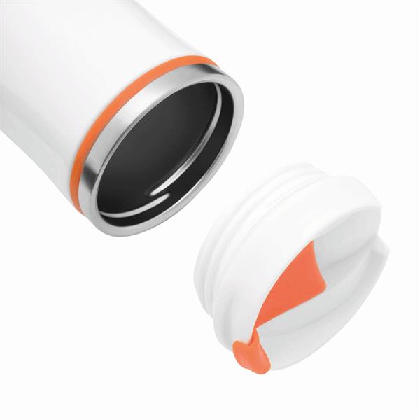 Kubek termiczny CREMA ze stali nierdzewnej wewnątrz i na zewnątrz. Z odkręcaną plastikową pokrywą i wbudowanym, składanym otworem do picia. Kolorowa guma wokół otworu, gumowany spód, pojemność ok. 400 ml. Materiał: Stal nierdzewna/Plastik Kolor: pomarańczowy Tagi: Kubki,filiżanki,przybory kuchenne,artykuły gospodarstwa domowego,kubki/garnki termiczne,akcesoria podróżne,kubki do kawy