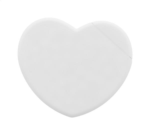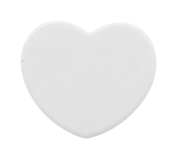 Plastikowy dozownik cukierków miętowych w kształcie serca, zawierający ok. 8 gramów cukierków miętowych bez cukru. Description: Plastikowy dozownik cukierków miętowych w kształcie serca, zawierający ok. 8 gramów cukierków miętowych bez cukru. Primary Color: biały Material 1: Plastik Rozmiar: 72×60×6 mm