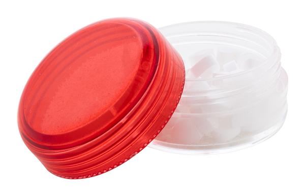 Okrągły, przezroczysty plastikowy słoik z kolorową zakrętką. Zawiera ok. 12 gramów cukierków miętowych. Description: Okrągły, przezroczysty plastikowy słoik z kolorową zakrętką. Zawiera ok. 12 gramów cukierków miętowych. Primary Color: czerwony Material 1: Plastik Rozmiar: o45×25 mm
