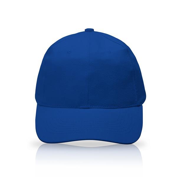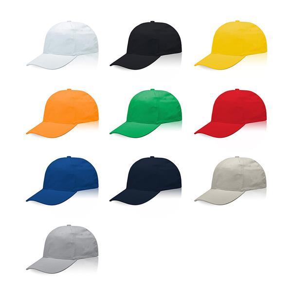 6-panelowa czapka dla dorosłych (obwód głowy: 58 cm), zapinana na metalową klamrę, z bawełny o gramaturze 225 g/m2.