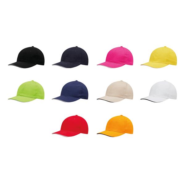 Czapka baseballowa LIBERTY. 6-segmentowa, wykonana z grubej szczotkowanej bawełny, z zapięciem na rzep i wyszywanymi wywietrznikami, wykończenia w kolorze trójwarstwowego daszka, wzmocniony segment przedni, 100% bawełna. Gramatura ok. 280 g/m2.