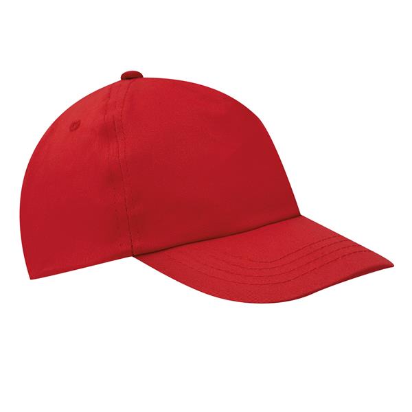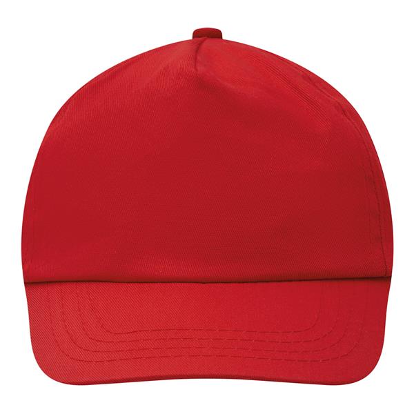 Czapka dla dzieci KIDDY WEAR. 5-segmentowa, ze wzmocnionym przednim segmentem, 2 haftowanymi otworami wentylacyjnymi, guzikiem, regulowanym zapięciem na rzep z tyłu. Materiał: 100% Bawełna, 155 g/m2 Kolor: czerwony Tagi: Czapki,kapelusze,artykuły rekreacyjne,nakrycia głowy,outdoor,tekstylia
