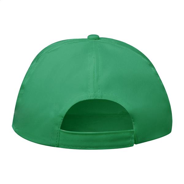 Czapka 5 panelowa zapinana na rzep. Poliester 180 g/m2 RPET.