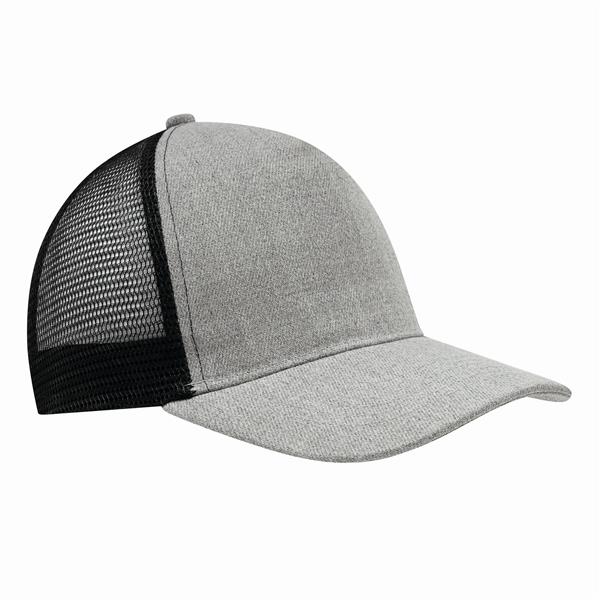 Czapka z daszkiem 5-panelowa CASUAL FIT, 2-kolorowa: wzmocniony przedni segment, pozostałe segmenty wykonane z siateczki, możliwość regulacji rozmiaru, z tyłu dwurzędowe zapięcie z tworzywa sztucznego.
