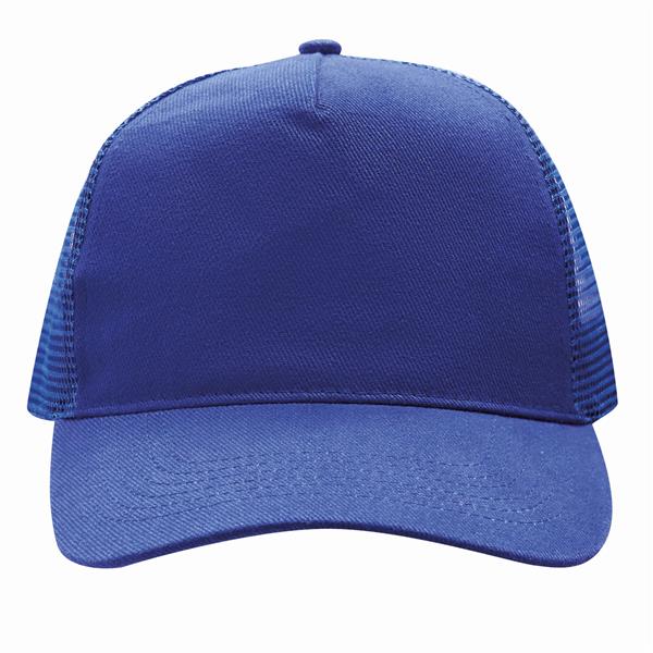 Czapka z daszkiem 5-panelowa FASTBALL: wzmocniony przedni segment wykonany ze szczotkowanej bawełny, pozostałe segmenty wykonane z siateczki, możliwość regulacji rozmiaru, z tyłu dwurzędowe zapięcie z tworzywa sztucznego.