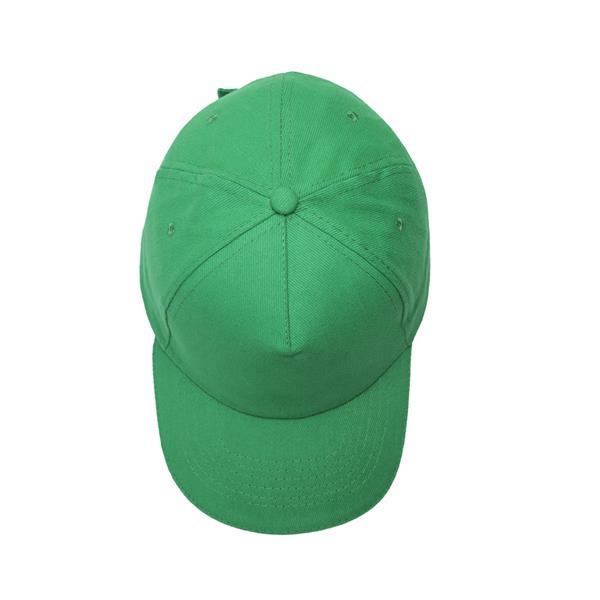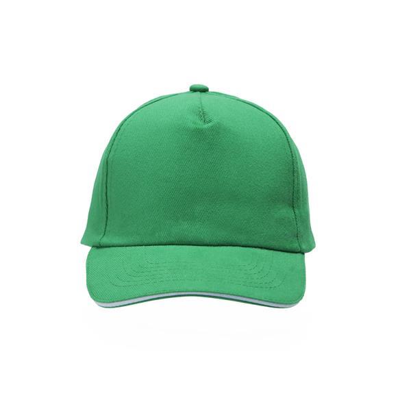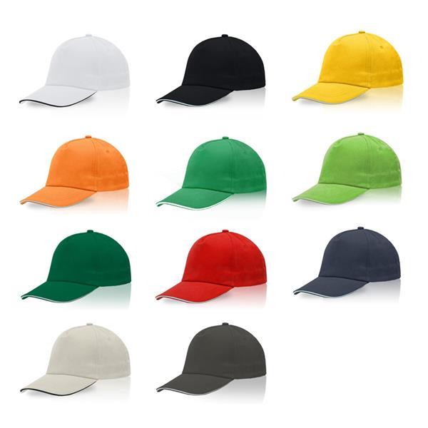 Czapka bejsbolówka z daszkiem z 5 panelami, wykonana z czesanej bawełny, z zapięciem na rzep.
