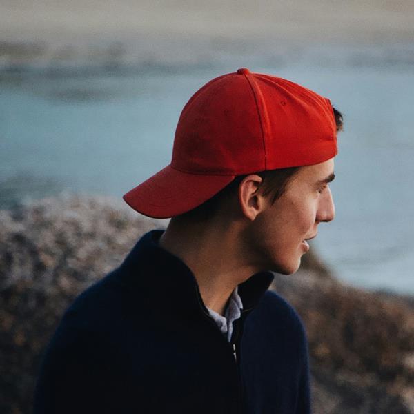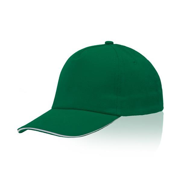 Czapka bejsbolówka z daszkiem z 5 panelami, wykonana z czesanej bawełny, z zapięciem na rzep.