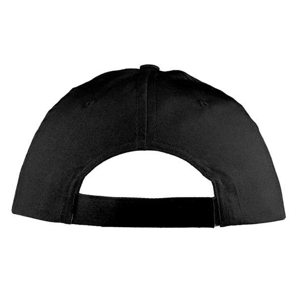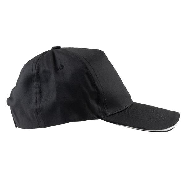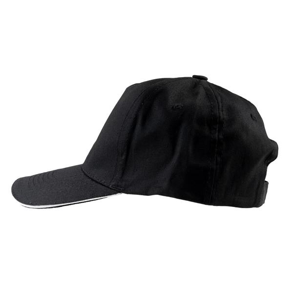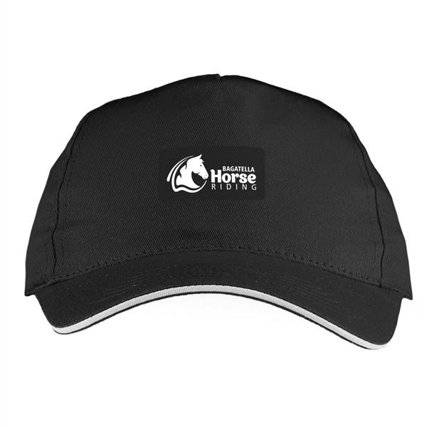 Czapka z daszkiem, posiada 5 paneli oraz zapięcie na rzep umożliwiający regulację rozmiaru, produkt wykonany z bawełny 155 g/m2