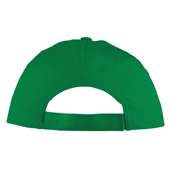 Czapka z daszkiem, posiada 5 paneli oraz zapięcie na rzep umożliwiający regulację rozmiaru, produkt wykonany z bawełny 155 g/m2