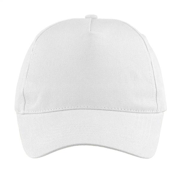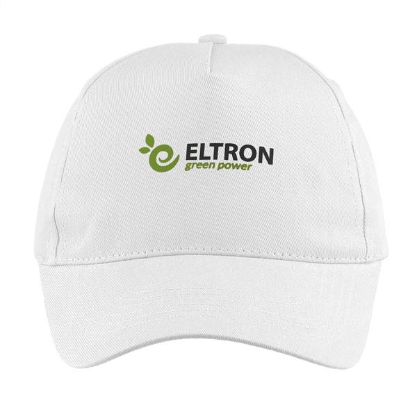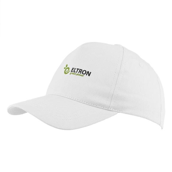 Czapka z daszkiem, posiada 5 paneli oraz zapięcie na rzep umożliwiający regulację rozmiaru, produkt wykonany z bawełny 155 g/m2