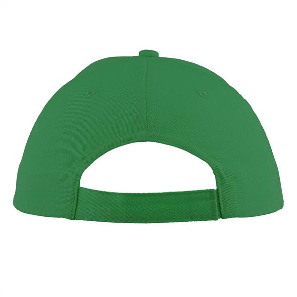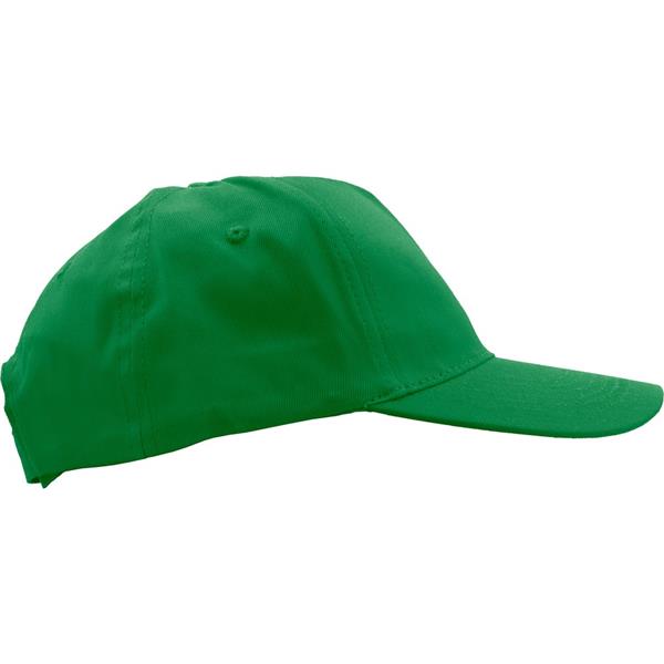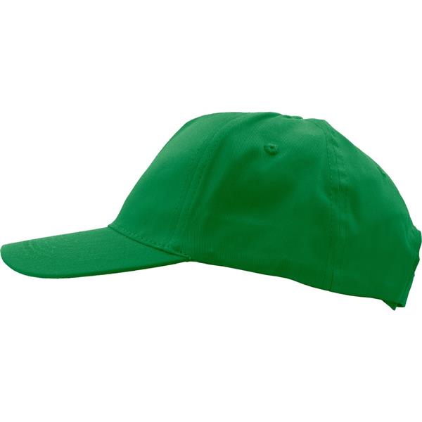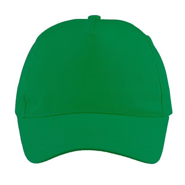 Czapka z daszkiem, posiada 5 paneli oraz zapięcie na rzep umożliwiający regulację rozmiaru, produkt wykonany z bawełny 155 g/m2
