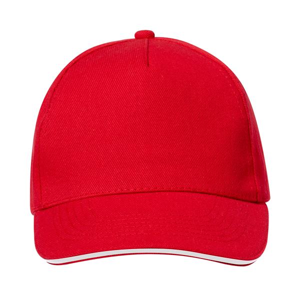 Czapka z daszkiem z poliestru RPET, pięciopanelowa i zapinana na rzep. Description: Czapka z daszkiem z poliestru RPET, pięciopanelowa i zapinana na rzep. Primary Color: czerwony Regulacja rozmiaru czapki: Rzep Material 1: Poliester z recyklingu PET Panele: 5 panel