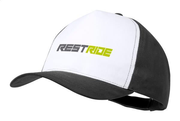 Czapka z daszkiem z poliestru, 5 paneli, idealna do nadruku sublimacyjnego. Description: Czapka z daszkiem z poliestru, 5 paneli, idealna do nadruku sublimacyjnego. Primary Color: czarny Material 1: Poliester Secondary Color: biały Gramatura 1: 140 g/m2