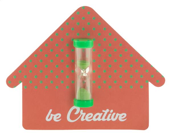 3 minutowy czasomierz z tworzywa sztucznego o dopasowym kolorze piasku. Produkt zawiera uchwyt z przyssawką. Description: 3 minutowy czasomierz z tworzywa sztucznego o dopasowym kolorze piasku. Produkt zawiera uchwyt z przyssawką. Primary Color: zielony Material 1: Plastik Secondary Color: transparentny Rozmiar: o20×60 mm
