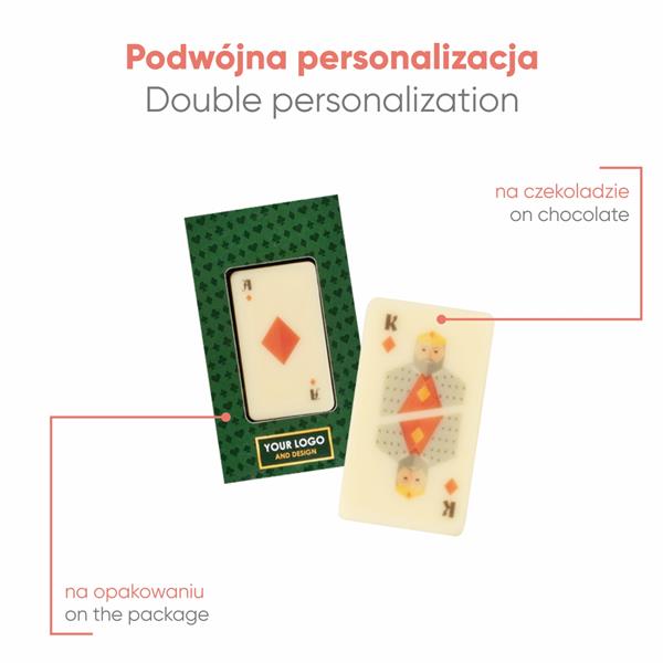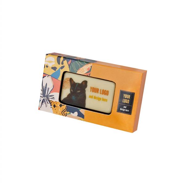 Opakowanie papierowe z okienkiem pięknie eksponuje produkt, a jego powierzchnię możemy dla Ciebie spersonalizować – podobnie jak samą czekoladkę. Sprawdź, jak działa moc podwójnej personalizacji.